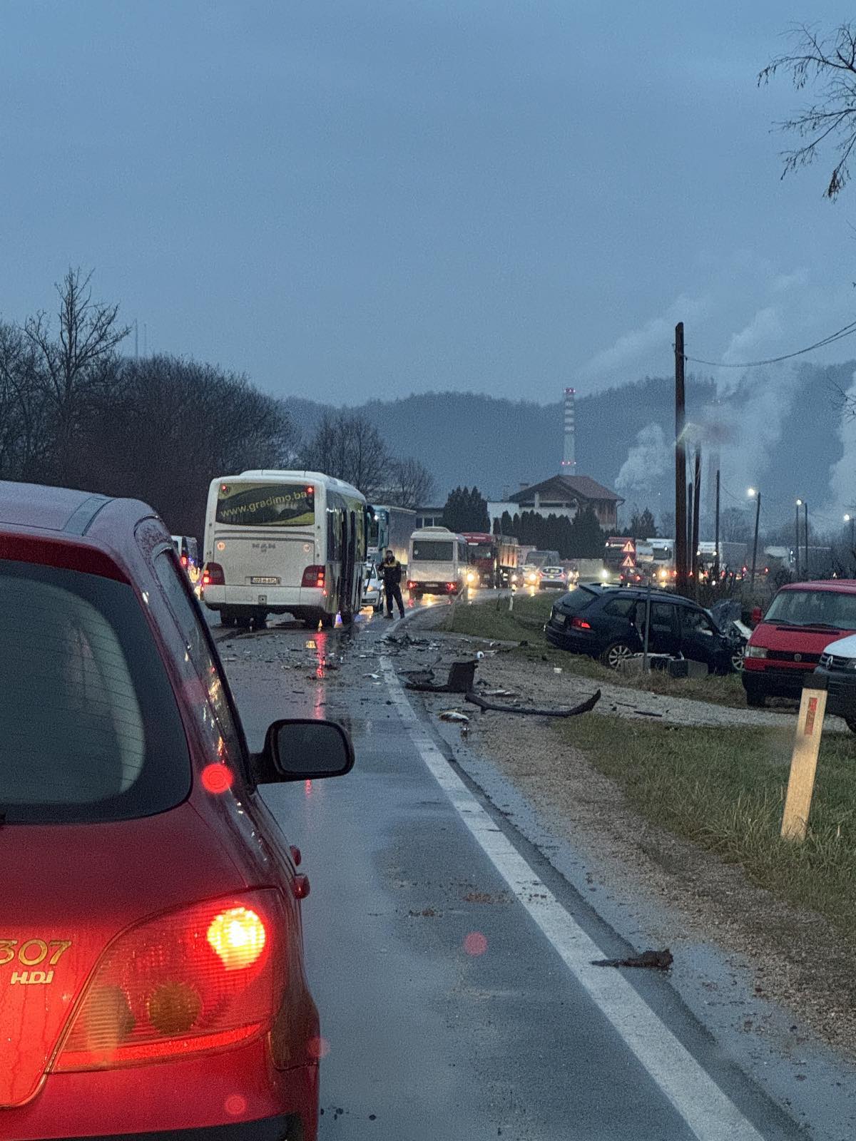 “Na dan 20. decembra 2024. godine u mjestu Liješnica došlo je do saobraćajne nezgode u kojoj su učestvovala dva motorna vozila – autobus i BMW. Nezvanično saznajemo da ima povređenih osoba i to A.N. rođen 1955 god. u Pljevljima koji je teže povrijeđen a ostala lica su prošla sa lakšim tjelesnim ozljedama.Takođe je i načinjena materijalna šteta. Saobraćaj se odvija otežano, jednom saobraćajnom trakom.”