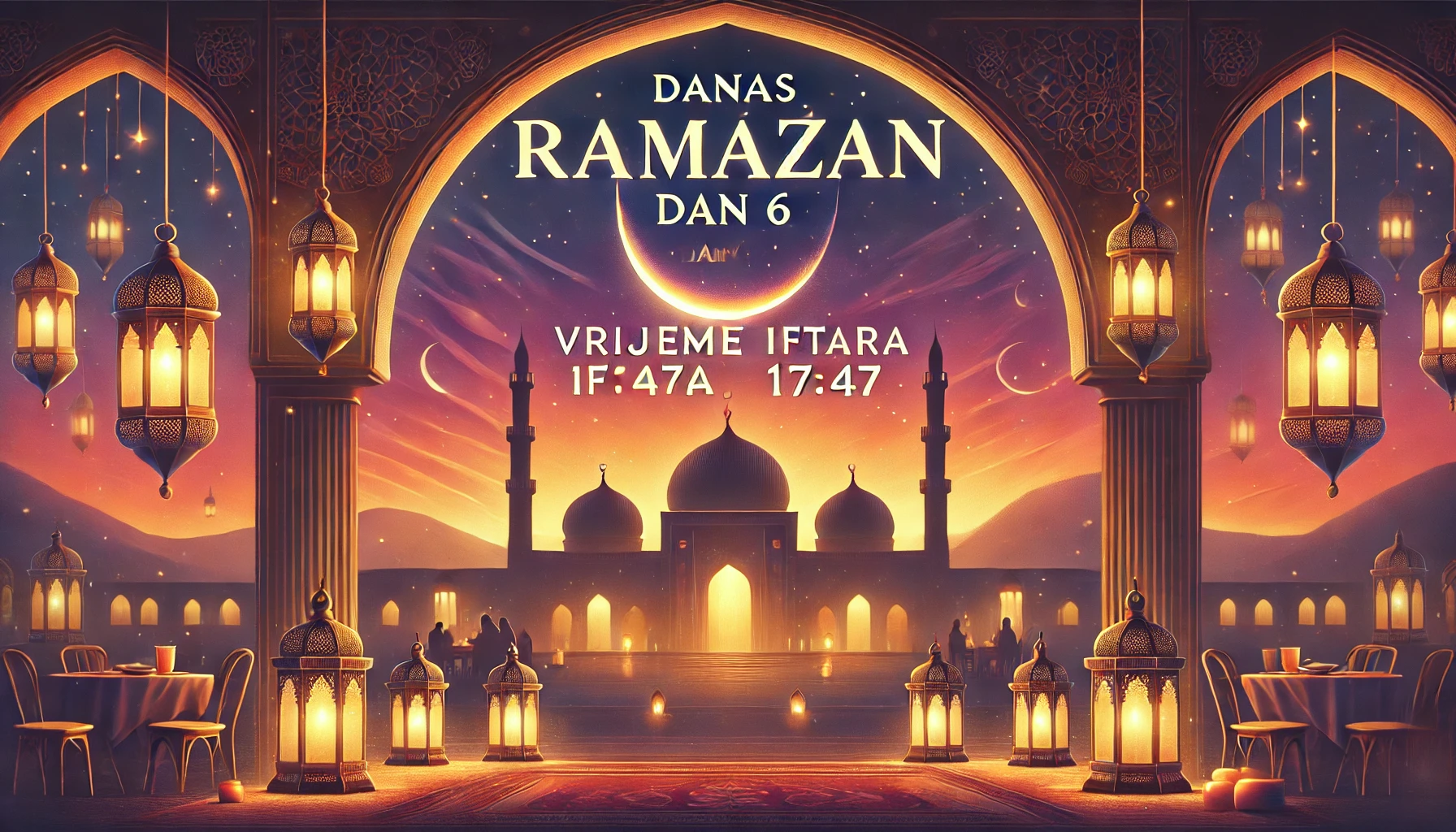Danas je šesti dan mubarek mjeseca Ramazana, a vrijeme iftara je u 17:47 sati.