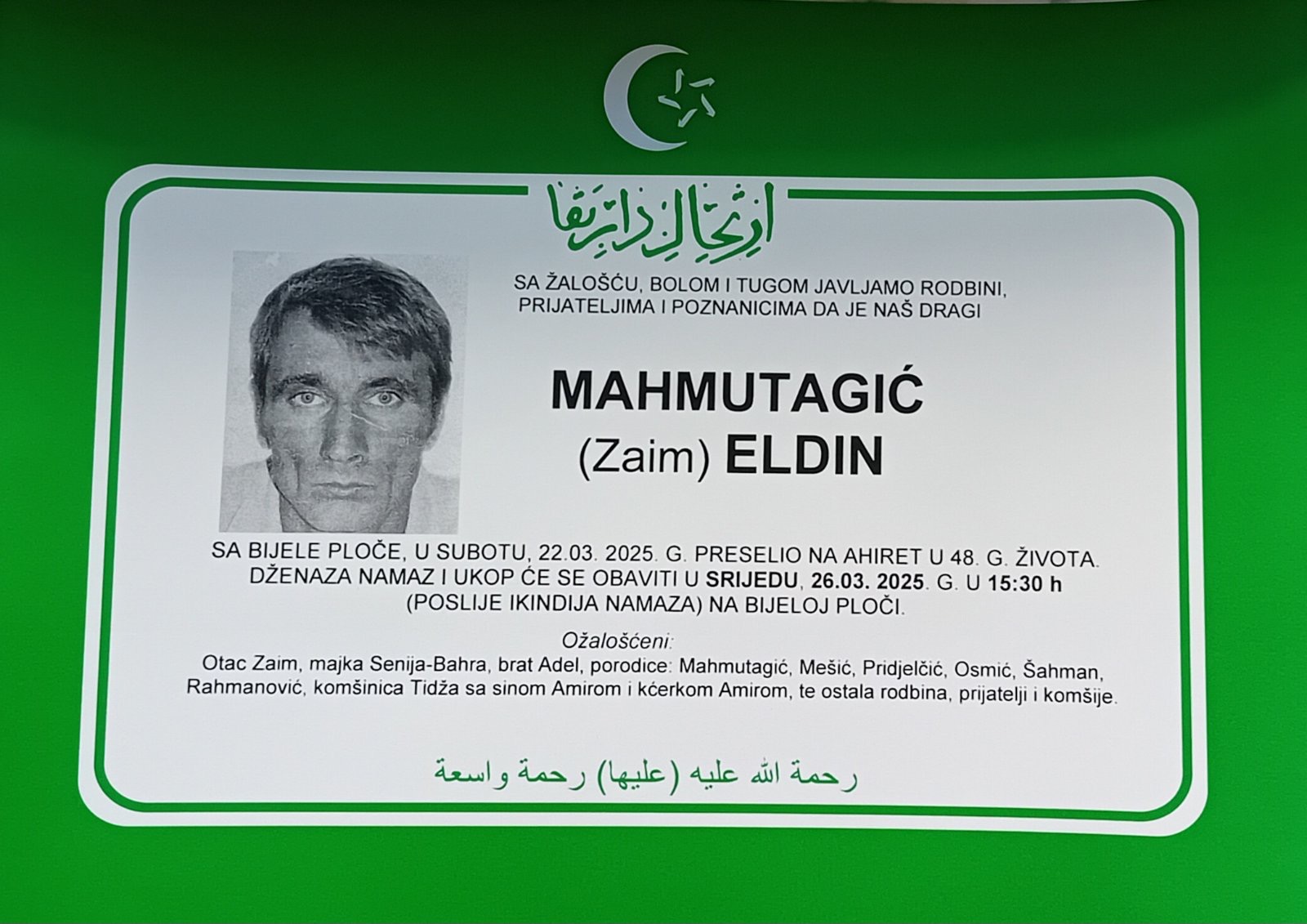sa Bijele Ploče, u subotu, 22. 3. 2025. godine, preselio na ahiret u 48. godini života.