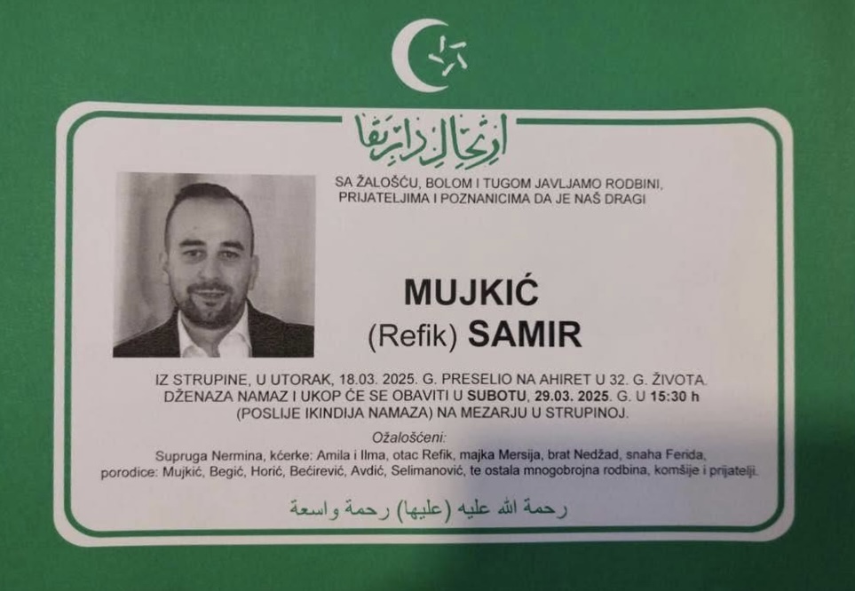iz Strupine, u utorak, 18. 3. 2025. godine, preselio na ahiret u 32. godini života.